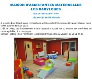 RECHERCHE ASSISTANT(E) MATERNEL(LE) MAM LES BABYLOUPS À COLY