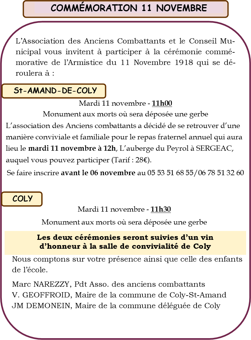 Le secrétariat de la Mairie de Coly-Saint-Amand vous accueille :