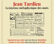 La Joyeuse Métaphysique des Mots selon Jean TARDIEU Dans le cadre du Printemps des Poètes, la cie des Voyageurs des Mots vous propose une lecture théâtralisée. Plusieurs dates vous sont proposées. Parmi [...]