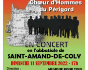 Concert Vox Vesunna Ils sont de retour ! Concert Chœur d'Hommes du Périgord : Vox Vesunna Dimanche 11 septembre à 17h en l'abbatiale de Saint-Amand-de-Coly Billetterie à l'entrée. 10 € . Gratuit - de 16 ans. [...]