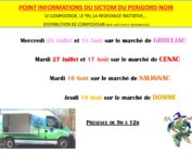 Depuis 2020 le SICTOM organise des permanences sur les marchés du secteur afin de distribuer des composteurs et faire de l’information. Cette année nous serons sur : Groléjac le 18 Août Cénac le 17 Août [...]
